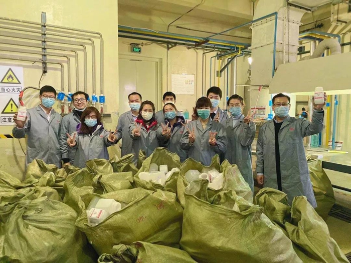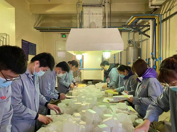 在聽(tīng)取化工廠黨總支書(shū)記王金華、副廠長(zhǎng)王云祥、安全總監(jiān)李川介紹產(chǎn)品、貼簽安全相關(guān)事項(xiàng)后。總部團(tuán)員青年們穿好工作服來(lái)到車間,經(jīng)過(guò)2小時(shí)的勞動(dòng),共貼簽6000個(gè),為企業(yè)生產(chǎn)貢獻(xiàn)一份綿薄之力。