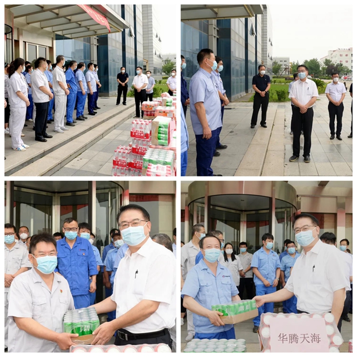 7月6日上午,陳宇一行來到集團大興化工園區,慰問園區內華騰化工、華騰天海、試劑所、化工廠4家企業的干部職工。陳宇對一線職工冒酷暑、戰高溫,認真負責的工作態度給予了高度肯定,對4家企業疫情防控、防汛、防暑降溫措施落實情況進行了督促和檢查。