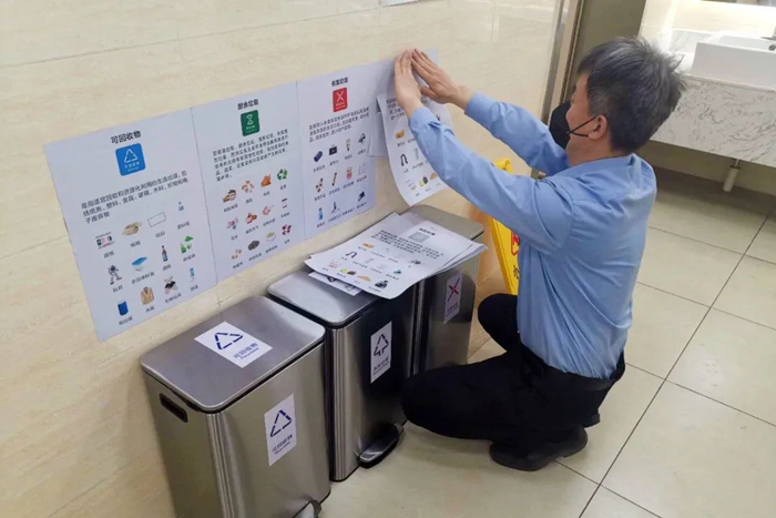 公司全體黨員落實“社區報到”工作,積極參與所在轄區“桶前值守”活動。公司各事業部垃圾分類指導員,在置業項目內入戶發放垃圾分類宣傳冊,利用樓宇LED顯示屏播放宣傳視頻,通過多種方式宣傳垃圾分類,詳細介紹垃圾分類準則、分類標準及相關知識,引導客戶正確投放生活垃圾,讓垃圾分類從口號變為習慣。在與客戶簽訂合同時將“生活垃圾分類及光盤行動承諾書”作為附件,要求共同履行社會責任,一起提升受托置業資產品質。