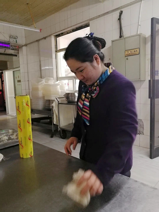 周引萍原籍甘肅,從春節(jié)起一直沒有返鄉(xiāng)休假,在這段緊張而忙碌的時間里,賓館洗碗工因疫情未歸,周引萍就主動擔(dān)負起洗碗工作。每日的洗碗消毒,看似沒有平時的工作量大,但因為要求高、標準高,要經(jīng)過嚴格的消毒程序,幾天下來,她的雙手出現(xiàn)了脫皮現(xiàn)象,而且長時間的彎腰,讓她的腰酸痛不已,要許久才能恢復(fù)體力。就是這樣,她從未想過退卻,從未提過苦和累。