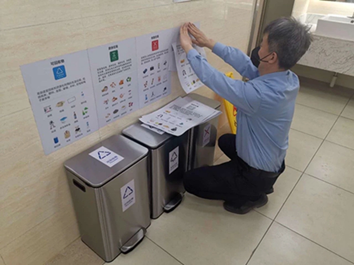 在做好分類管理的同時,公司及時將相關宣傳材料送到租戶和個人手中,廣泛宣傳垃圾分類的重要性和具體要求。同時,丹陛華公司向保潔人員宣傳和講解垃圾分類的必要性和知識,讓他們成為垃圾分類的指導員和監督員,在現場監督大家正確投放垃圾。