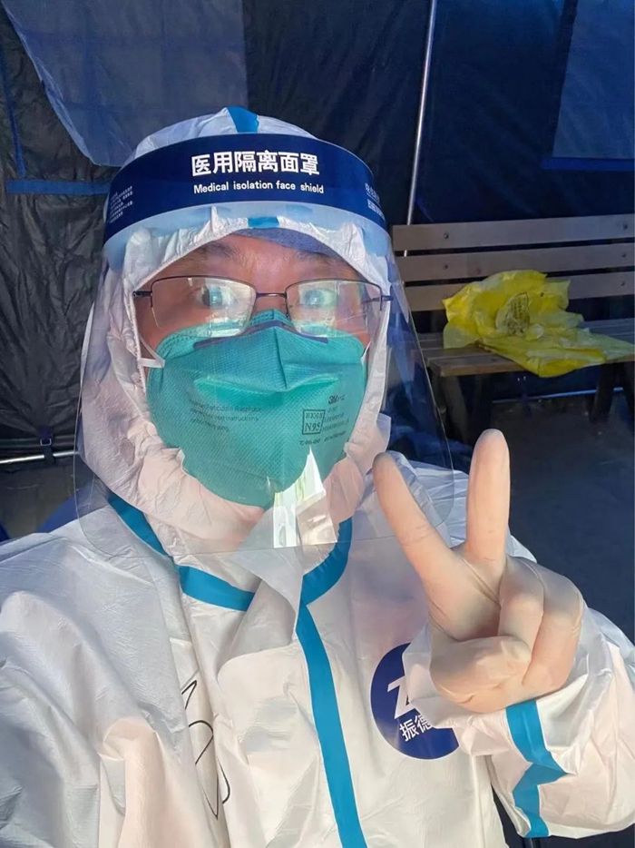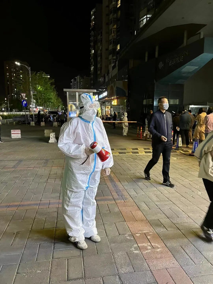 華騰丹陛華業務骨干劉純在潘家園街道潘家園東里社區參加核酸檢測現場秩序維護或信息錄入工作。