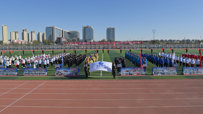 彩旗飄揚(yáng)、步履鏗鏘。隨著檢閱式開始,國(guó)旗方陣、紅旗護(hù)衛(wèi)方陣、應(yīng)急隊(duì)伍方陣、裁判員工作員方陣以及集團(tuán)二級(jí)單位14支參賽代表隊(duì)方陣整齊列隊(duì)。伴著激昂的鼓聲和雄壯的樂曲聲,各代表隊(duì)精神抖擻、器宇軒昂,邁著雄健的步伐以昂揚(yáng)的姿態(tài),挺胸抬頭、闊步向前,一聲聲震天的口號(hào)在主席臺(tái)前響起。北京化工人朝氣蓬勃、奮勇爭(zhēng)先的精神風(fēng)貌震撼全場(chǎng)。