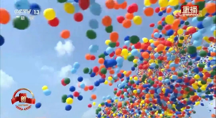 9月3日,紀念中國人民抗日戰爭暨世界反法西斯戰爭勝利80周年大會在北京天安門廣場隆重舉行。當人們沉浸在雄渾威武的解放軍受閱部隊和滾滾鐵流中時,騰空而起的8萬支彩色氣球,伴隨著翱翔的和平鴿,將天安門廣場上空渲染得五彩繽紛、銳氣祥和,瞬間將紀念大會再次推向高潮。