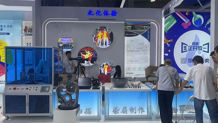 本次參展,北京化工集團以數字技術等多種形式,構建沉浸式觀展體驗,集中呈現生物醫藥、?;芳泄芾怼⒏叨酥圃煨虏牧系?ldquo;三個北化”建設最新產品和服務。
