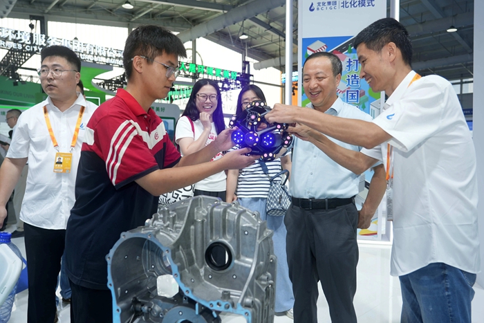 致力于職業(yè)技能人才培養(yǎng)的技師學(xué)院,在互動中呈現(xiàn)世界技能大賽金牌項目——機(jī)電一體化的卓越成果,學(xué)院以人機(jī)互聯(lián)的3D掃描和工業(yè)機(jī)器人吸引了大批參觀者駐足,讓觀眾近距離感受產(chǎn)教融合的創(chuàng)新實踐和“化工+教育”的協(xié)同價值。