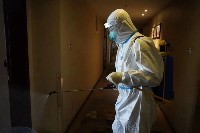 每天深夜,當賓客們沉沉睡去,閉環(huán)服務人員還要進行垃圾消毒清運工作。眾所周知,垃圾是病毒最容易傳播的媒介,為防止疫情傳播,閉環(huán)人員要對一袋袋垃圾進行全面消殺,然后再手動一袋袋地將垃圾送至目標場所,垃圾的異味常常令服務人員一陣陣作嘔,但大家沒有一句怨言。