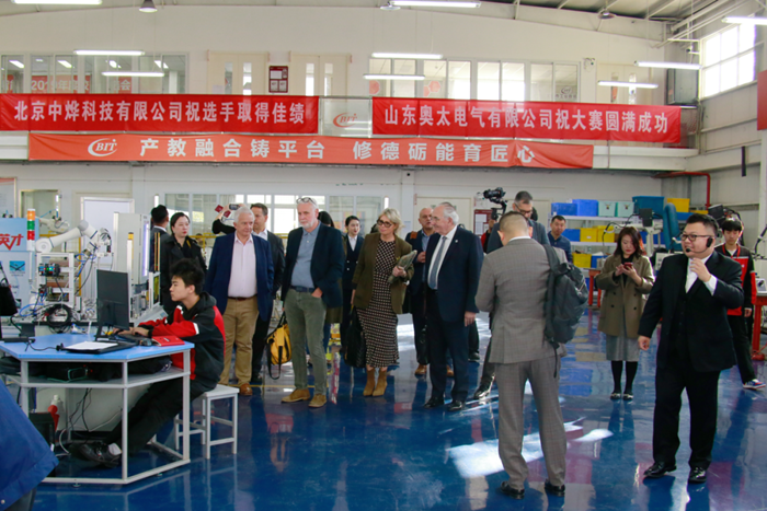 按照精心設(shè)計(jì)的接待路線,英國職業(yè)技能訪問團(tuán)一行先后來到學(xué)院數(shù)控車間、數(shù)控世賽基地、文物修復(fù)實(shí)訓(xùn)室等多個(gè)教學(xué)場(chǎng)所參觀。