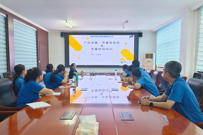為進(jìn)一步提升青年職工質(zhì)量意識,強(qiáng)化質(zhì)量管理水平,9月21日,華騰橡塑安徽華騰公司以青年實訓(xùn)基地為平臺開展質(zhì)量標(biāo)準(zhǔn)專項培訓(xùn)。安徽華騰質(zhì)量部部長吳琴梅圍繞生產(chǎn)流程、生產(chǎn)全過程檢驗、產(chǎn)品質(zhì)量檢測等多方面內(nèi)容,結(jié)合實際案例進(jìn)行了詳細(xì)講解。