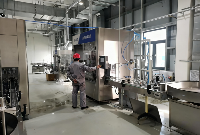 陳宇一行走進灌裝車間、精餾車間、危化品庫、中控室等區域,仔細察看設備運行狀態和管道布局,深入了解工藝流程優化方案,以及當前設備調試情況。