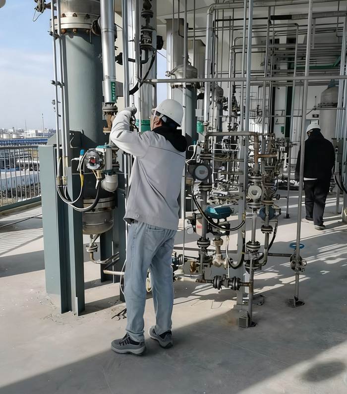 10月20日,華騰通廣高純試劑項目水聯運試車正式啟動。此次水聯運覆蓋精餾、灌裝等全流程,計劃持續5天,通過模擬物料精餾、灌裝等情形,驗證設備性能、管道密封性及自控系統穩定性。